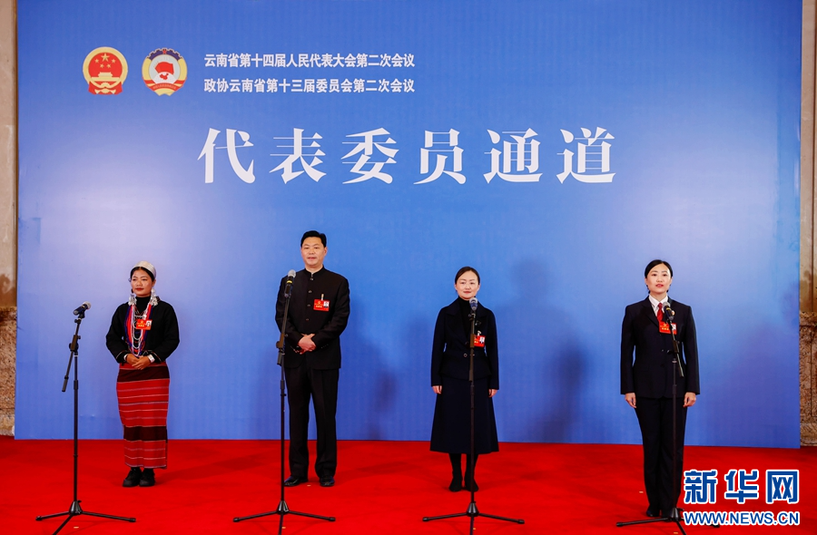 1月28日,云南省第十四届人民代表大会第二次会议举行第二场“代表通道”采访活动。新华网发(李浩 摄)