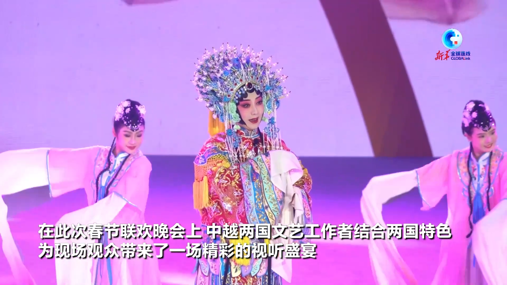 在此次春节联欢晚会上,中越两国文艺工作者结合两国特色,为现场观众带来了一场精彩的视听盛宴,具有两国特色的文艺节目充分展现了中越两国人民深厚的情谊。