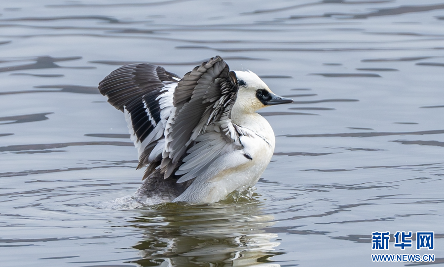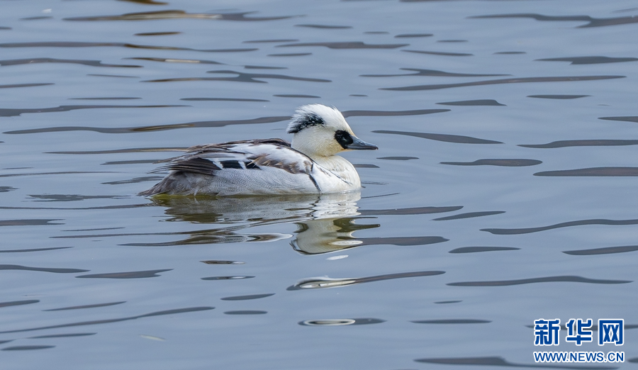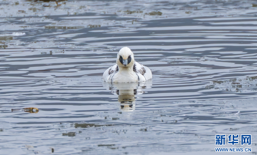 酷似“大熊猫”的斑头秋沙鸭(1月27日摄)。新华网发(朱边勇 摄)