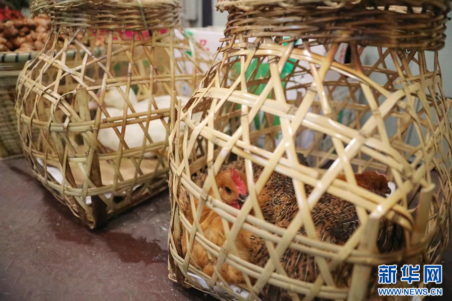 2月2日,“慢火车”年货街上售卖的家禽。新华网发(杨紫轩 摄)
