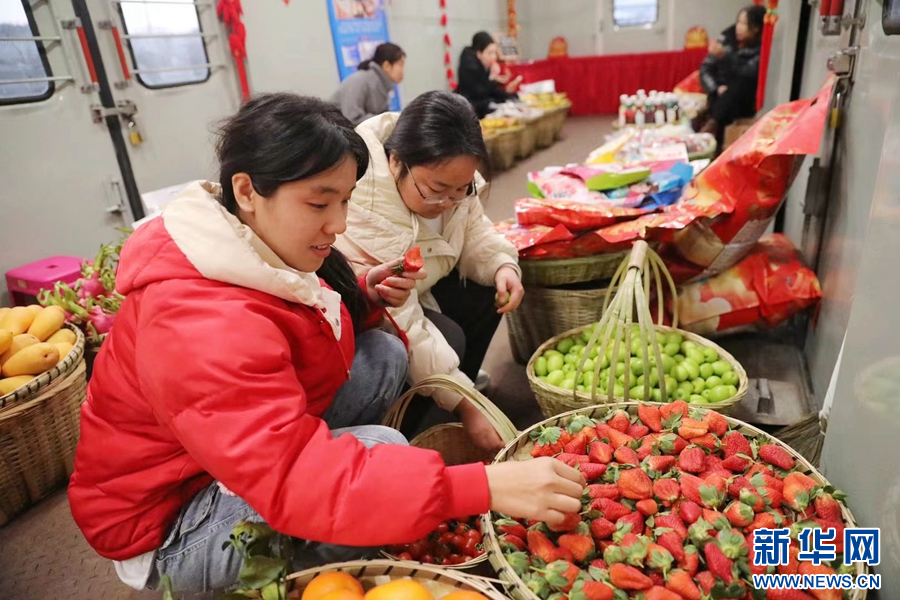 2月2日,昆明至元谋西的“慢火车”上办起了年货街。新华网发(杨紫轩 摄)
