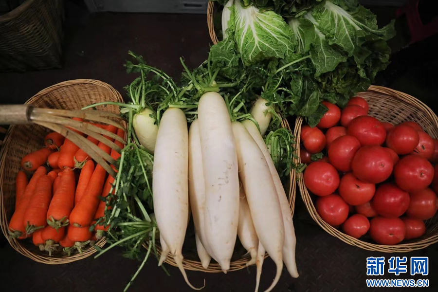 2月2日,“慢火车”年货街上售卖的各类蔬菜。新华网发(杨紫轩 摄)