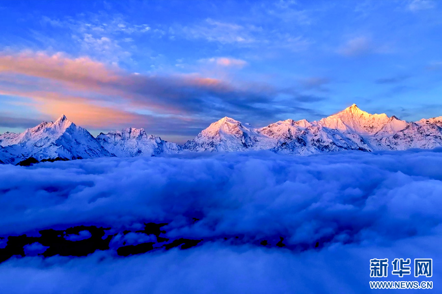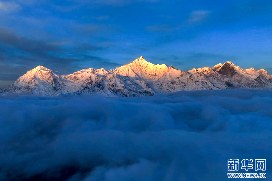 云海之上的梅里雪山“日照金山”盛景(2月4日摄)。新华网发(李春雷 摄)