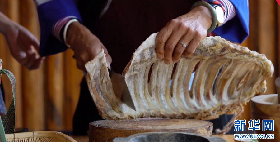 砍切腊排骨(资料图)。新华网发(丽江市古城区委宣传部 供图)