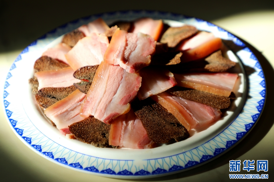 昭通烟熏腊肉(2023年12月27日摄)。新华网发(何桂花 摄)