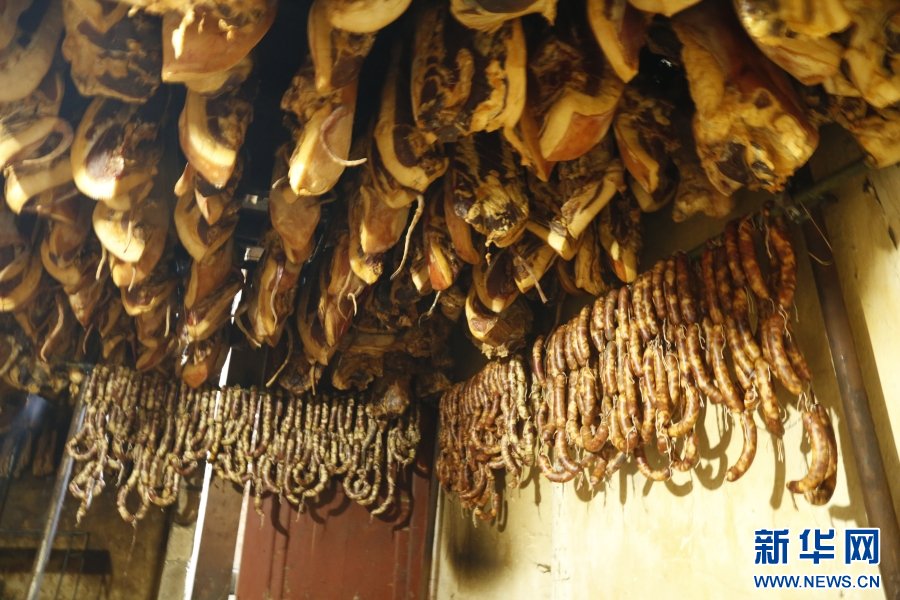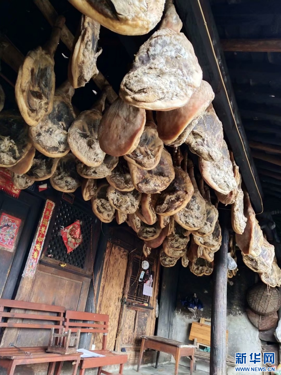 屋檐下挂满火腿(资料图)。新华网发(凤庆县融媒体中心 供图)