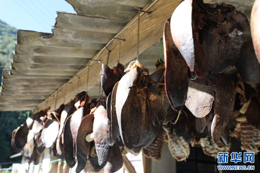 晾晒吹肝(1月3日摄)。新华网发(普洱市委宣传部 供图)