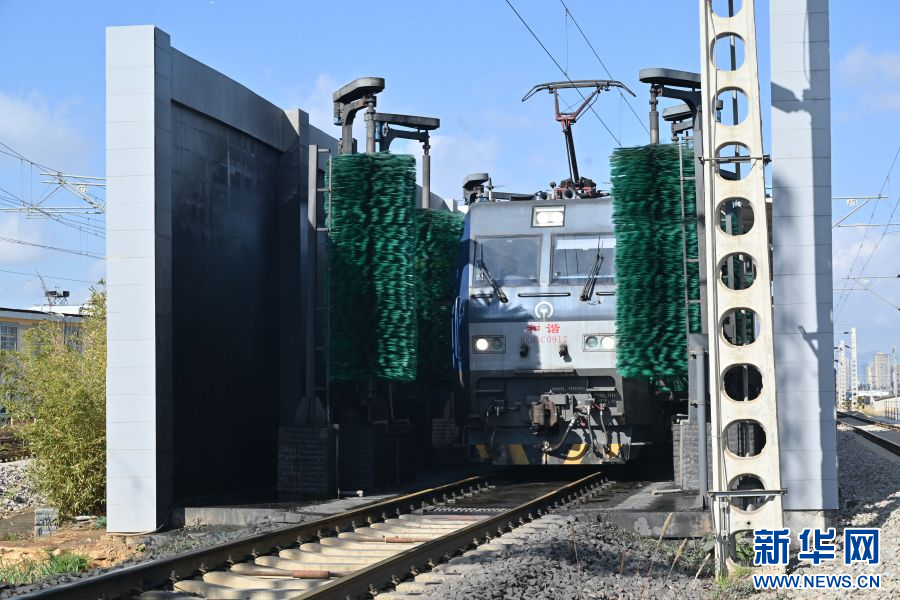 机车经历清洗环节(资料图)。新华网发(孟琦松 摄)