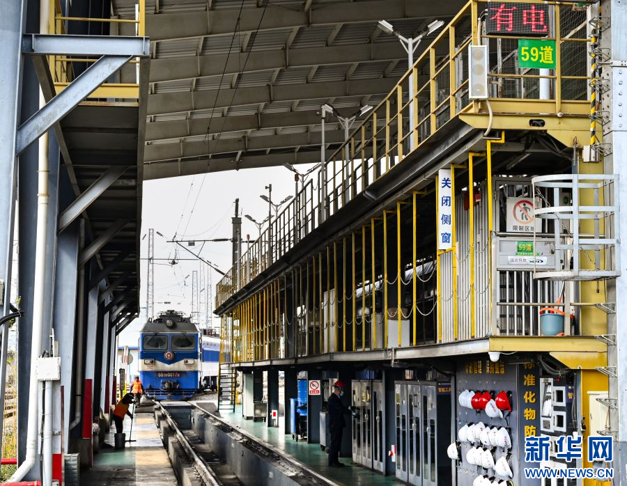 机车驶入走行部检测区(资料图)。新华网发(孟琦松 摄)