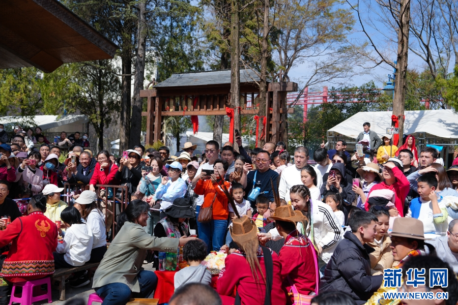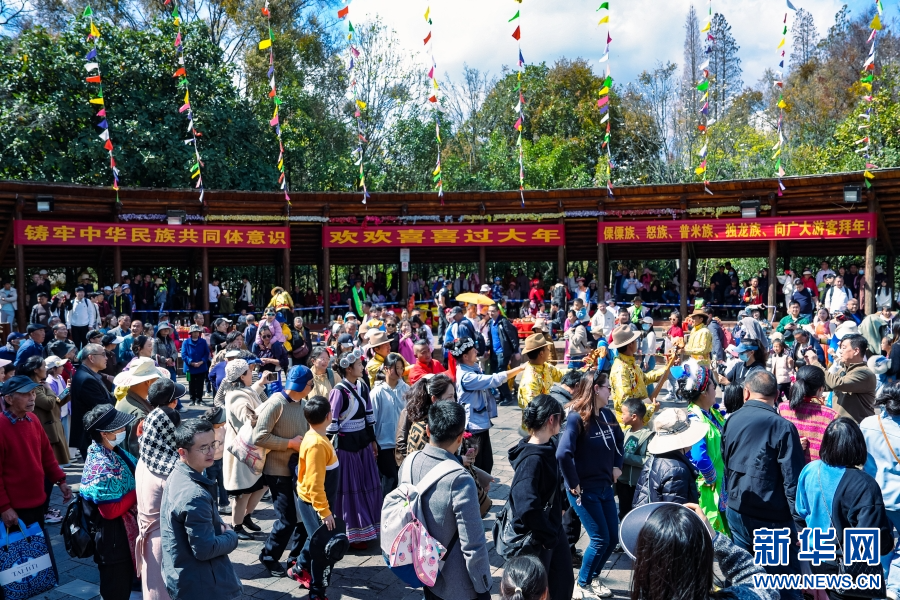 傈僳族拜年现场游人如织(2月15日摄)。新华网发(云南民族村供图)