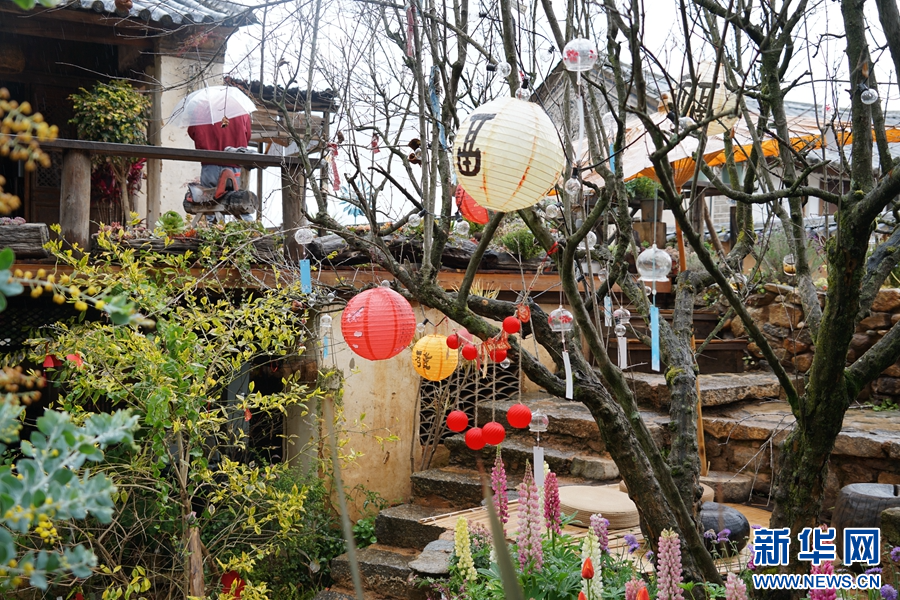 凤阳邑“有风小院”布置了各类新春元素小挂件(2月11日摄)。新华网发(大理市融媒体中心供图)