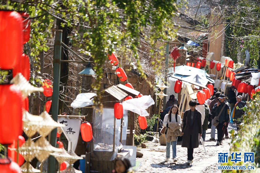 游客在凤阳邑集市上游览闲逛(2月11日摄)。新华网发(大理市融媒体中心供图)