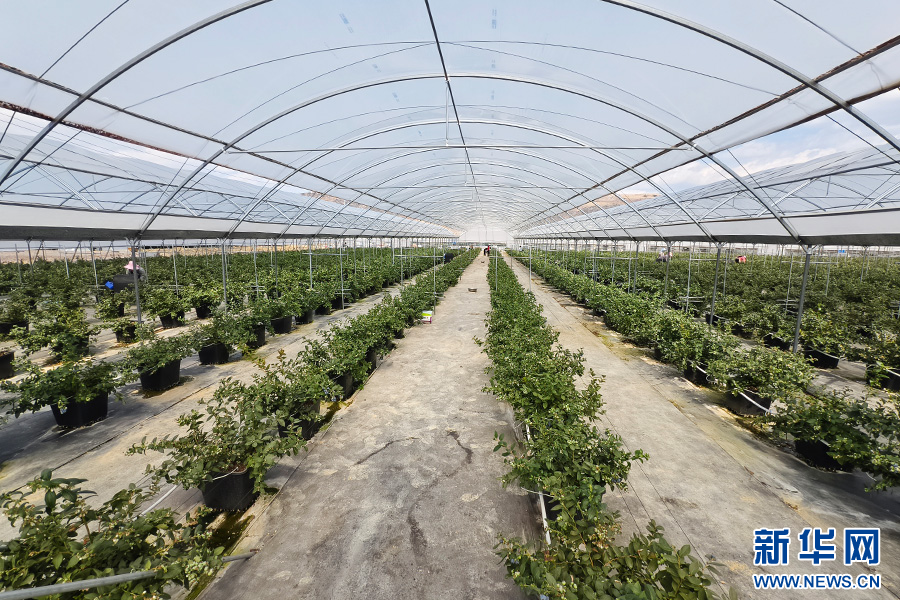 草坝镇现代化蓝莓大棚(2月16日摄)。新华网发(陈华英 摄)