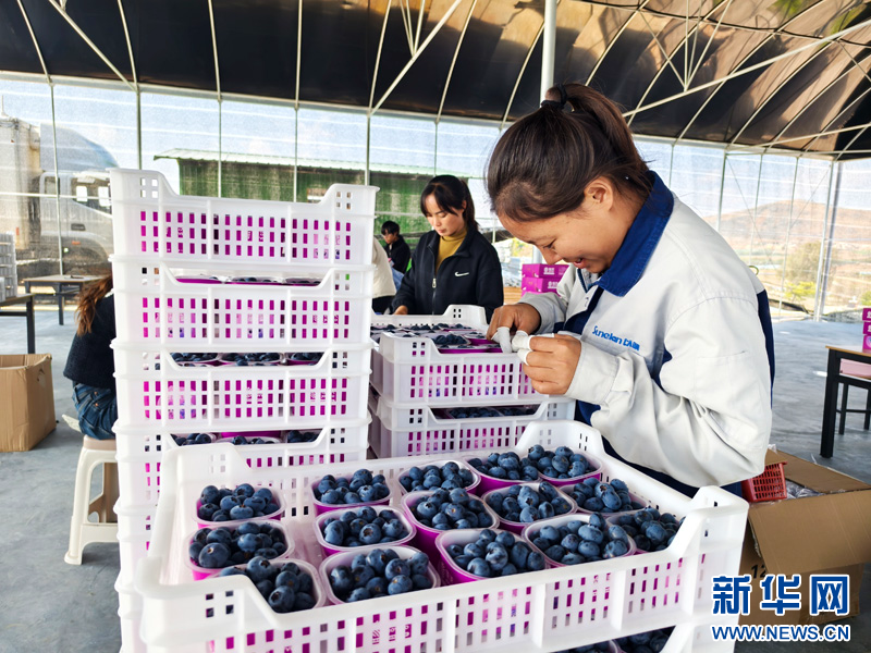 近日,云南省红河哈尼族彝族自治州蒙自市草坝镇富民强村蓝莓种植示范基地内一片繁忙景象。目前正是销售旺季,种植户许泽夫妇和工人们穿梭在蓝莓丛中,享受着丰收的喜悦。