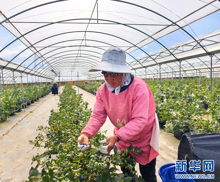 农户收获蓝莓(2月16日摄)。新华网发(陈华英 摄)