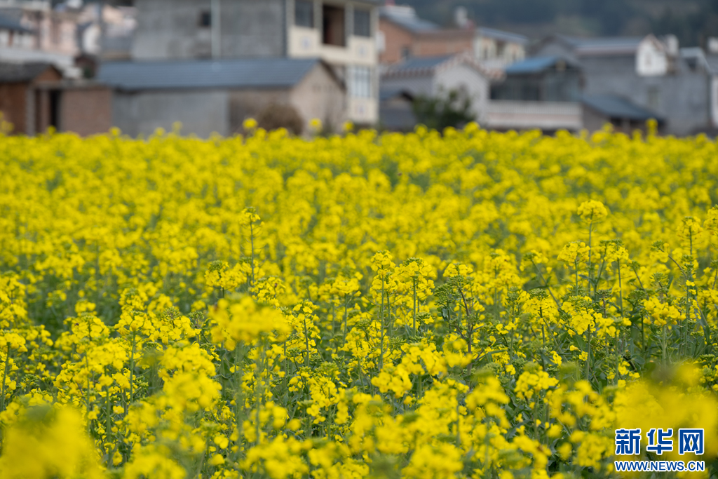 罗平县马街镇阿市村的油菜花(2月12日摄)。新华网发(刘起 摄)