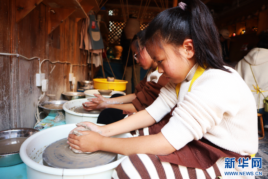 游客体验永昌陶制作(2月19日摄)。新华网发(杨雯 摄)