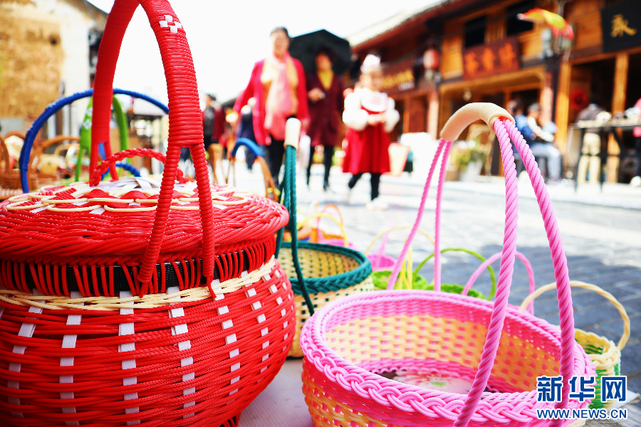 手工编织的花篮(2月19日摄)。新华网发(杨雯 摄)