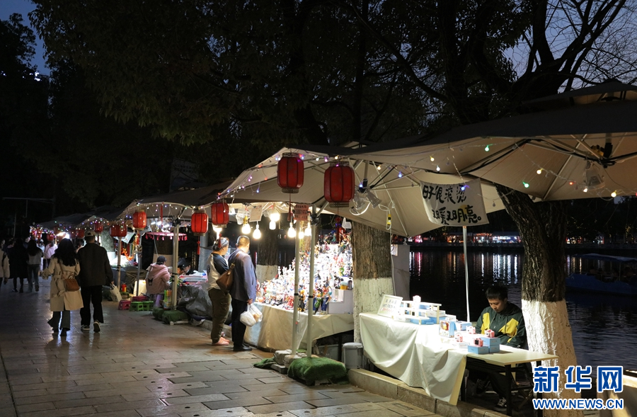 翠湖公园里的星光夜市(摄于2月21日)。新华网 念新洪 摄