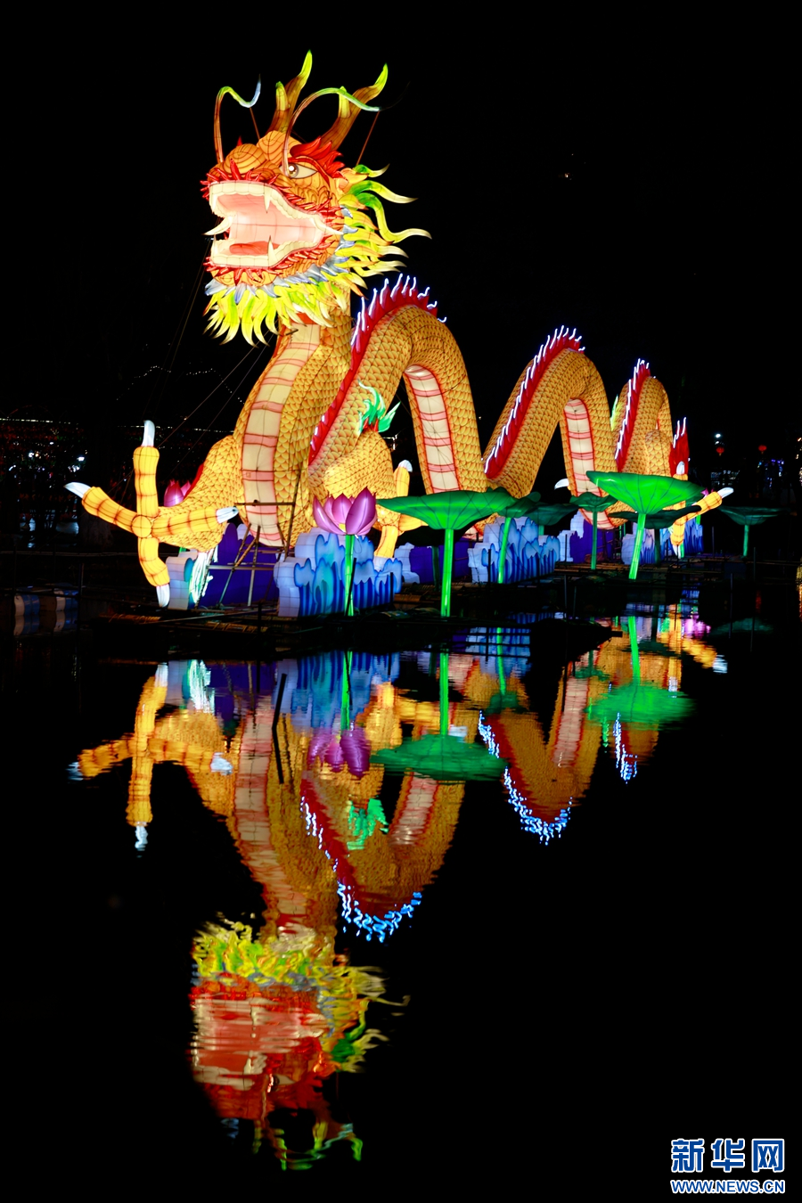 翠湖公园里的“龙腾盛世”主题水面灯光秀(摄于2月21日)。新华网发 (丁凝 摄)