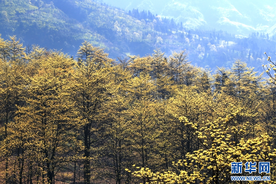 在云南省昭通市大关县的山野里,清晨沐着朝晖,登高远眺,总能见到满山金黄的檫木花悄然绽放,一派生机勃勃。(完)(唐应平 汪朗 何桂花)