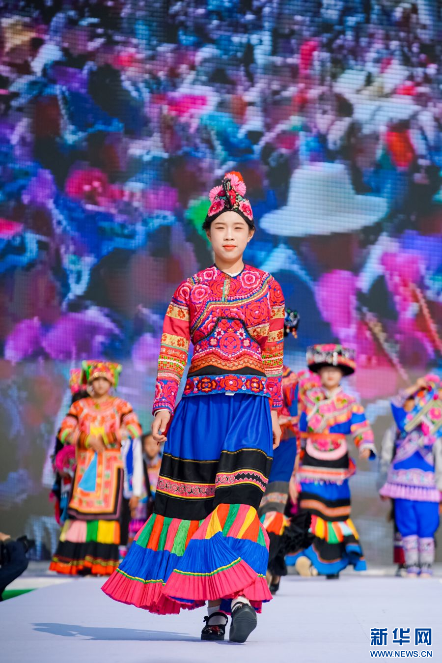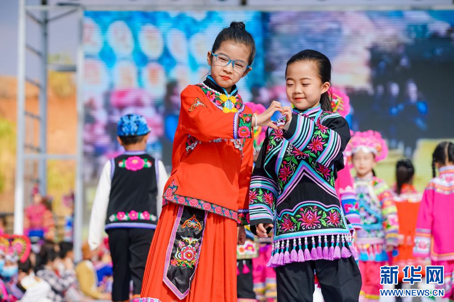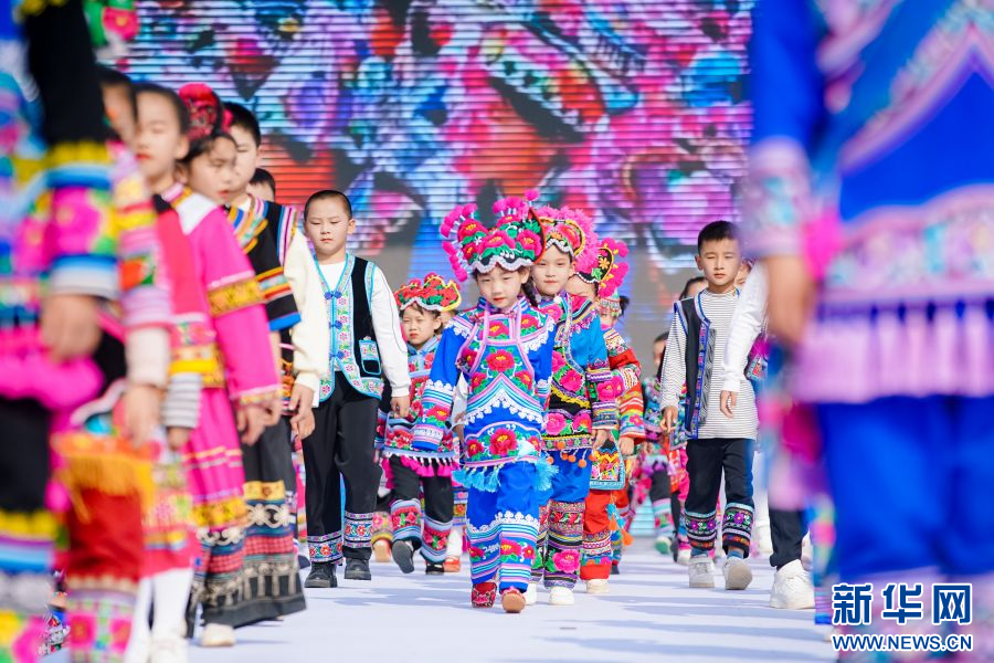 2月23日,云南省楚雄彝族自治州永仁县举办“新年游·新年俗”——非遗(彝绣)服装服饰文旅体验活动,来自全国上百位儿童齐聚永仁体验彝族赛装(彝绣)文化,展示秀场风采。