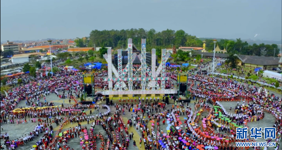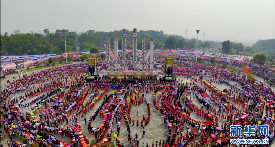 目瑙纵歌节现场节日氛围浓烈(2月24日摄)。新华网发(德宏州融媒体中心供图)
