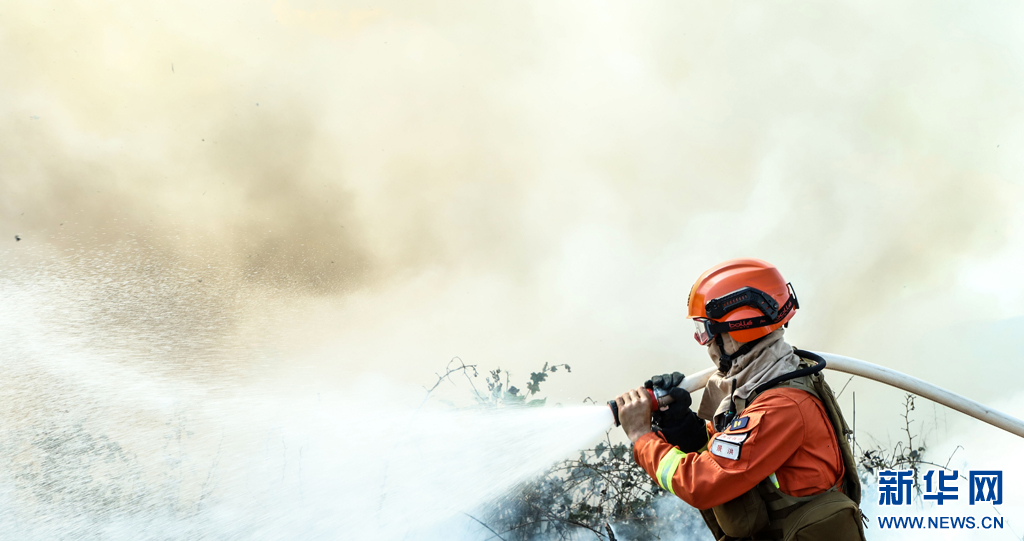 消防员快速接近火线(2月29日摄)。新华网发(路言 摄)