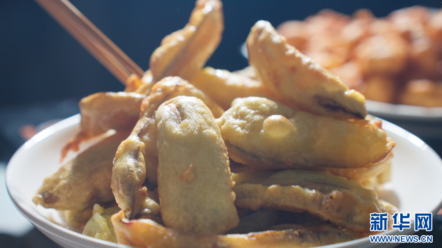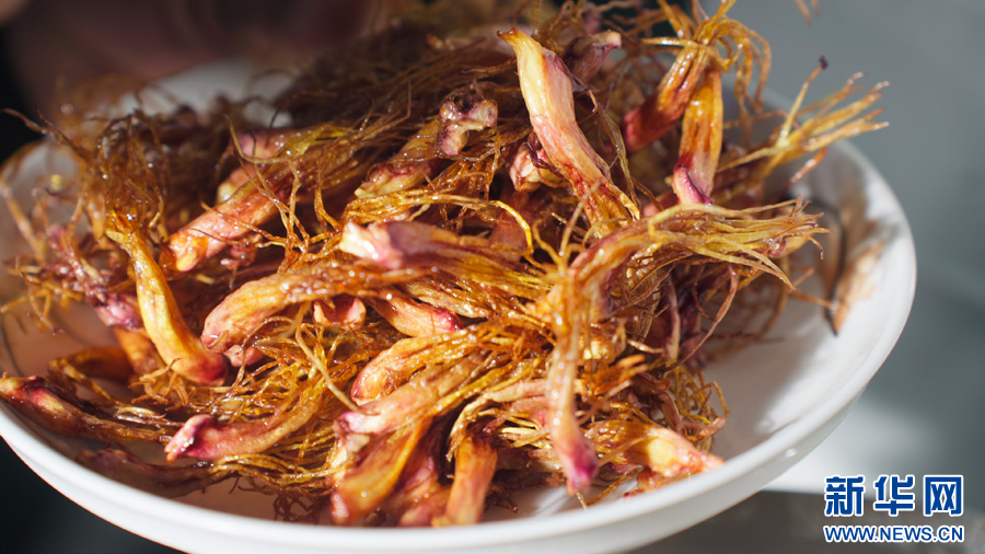 油炸攀枝花花蕊(2月28日摄)。新华网发(余林强摄)