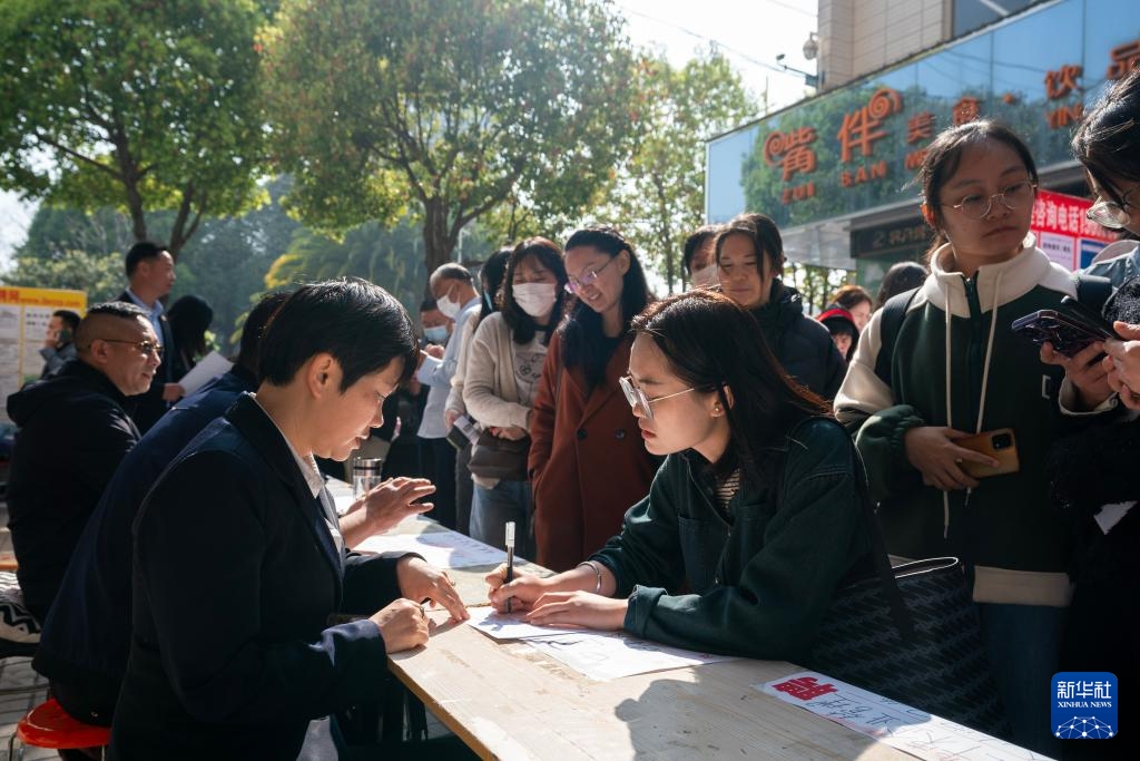 3月8日,求职者在云南昆明的2024年“春风行动”女性专场招聘会上填写个人求职信息。
