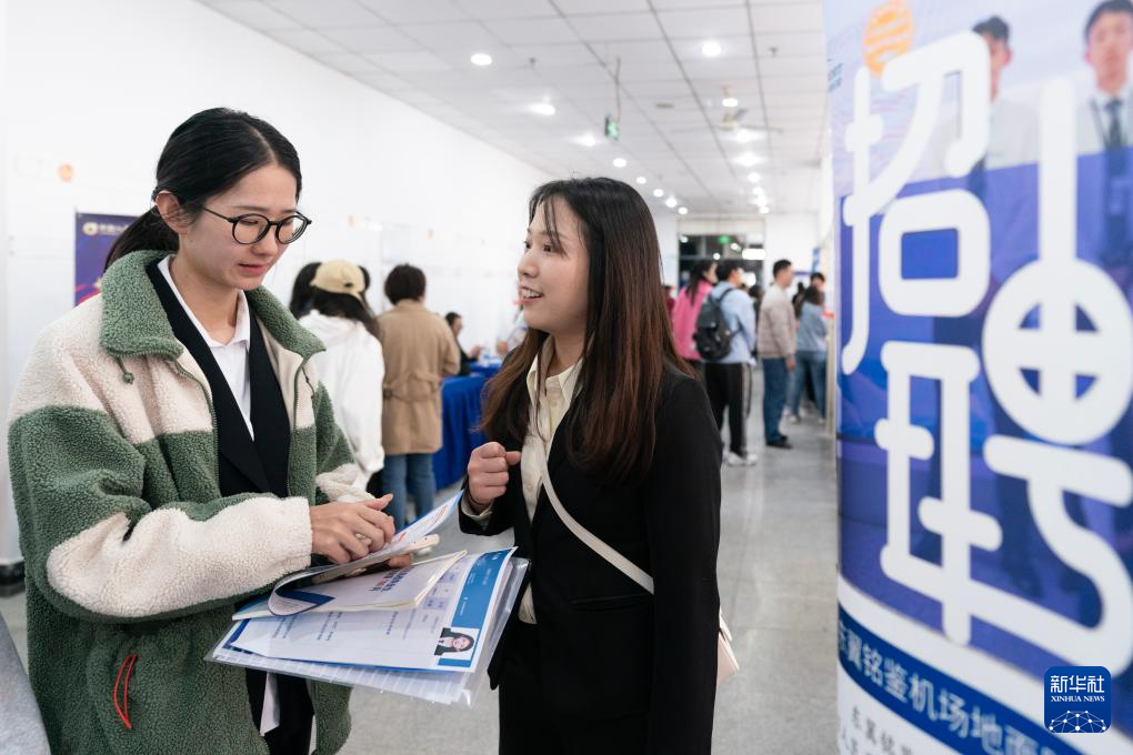 3月8日,求职者(左)在云南昆明的2024年“春风行动”女性专场招聘会上咨询岗位信息。