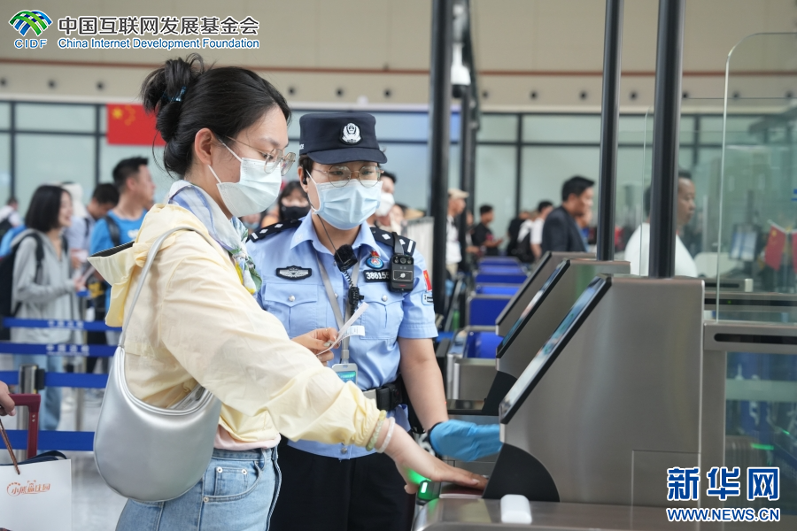 磨憨站内,游客正通过快捷通道安检入站(4月3日摄)。新华网发(刘云 摄)