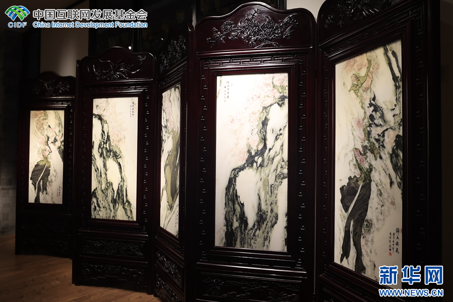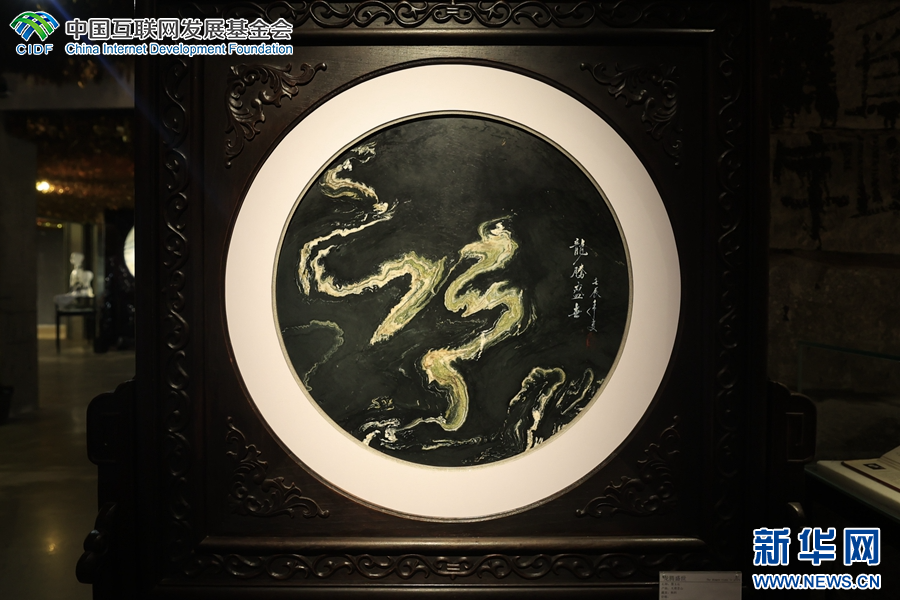 大理石方志馆展出的大理石画(摄于4月3日)。(新华网 赵普凡 摄)