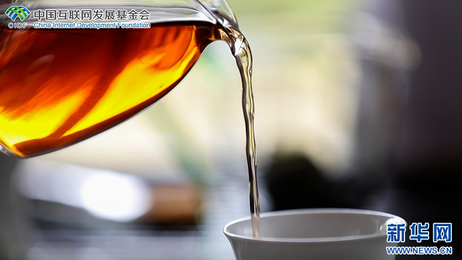 云南普洱翁基古寨,当地人正在泡茶,茶汤清澈(4月1日摄)。新华网发(徐华陵 摄)