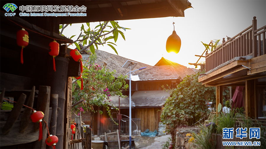 落日余晖下的云南普洱翁基古寨(4月1日摄)。新华网发(徐华陵 摄)