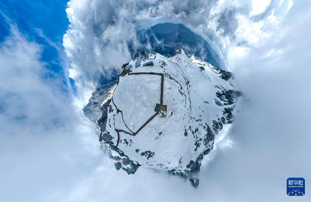 这是3月31日拍摄的玉龙雪山冰川公园(无人机球形全景照片)。新华社发