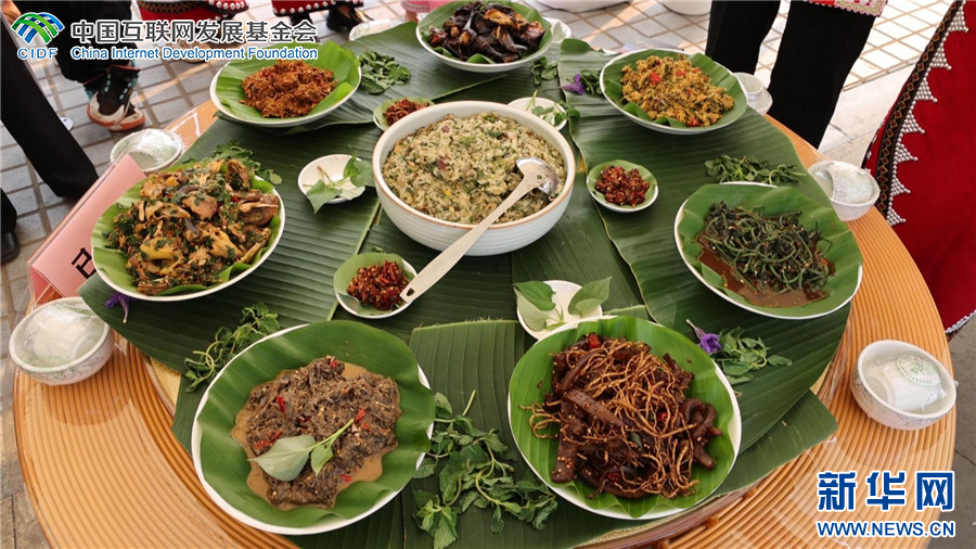 各式各样的少数民族美食(4月1日摄)。新华网发(澜沧县融媒体中心 供图)