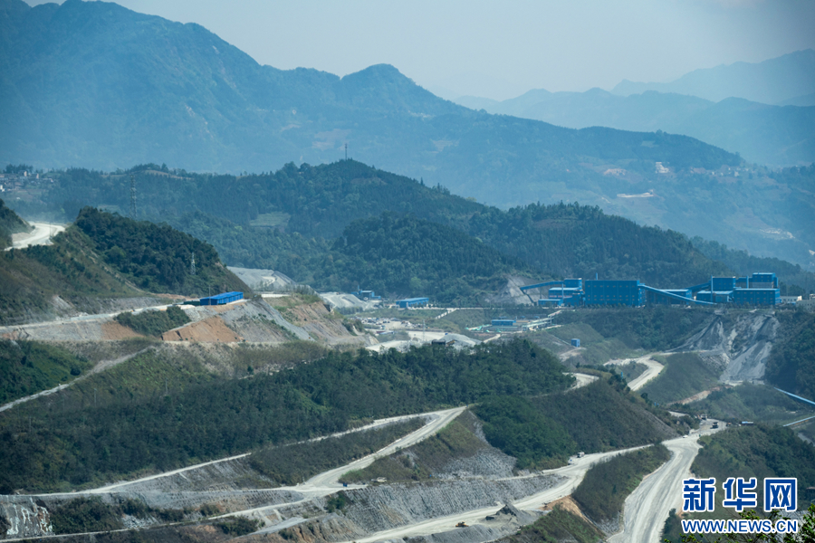 远眺华联锌铟铜街——曼家寨露天矿山一角(2024年3月6日摄)。新华网发(刘起 摄)