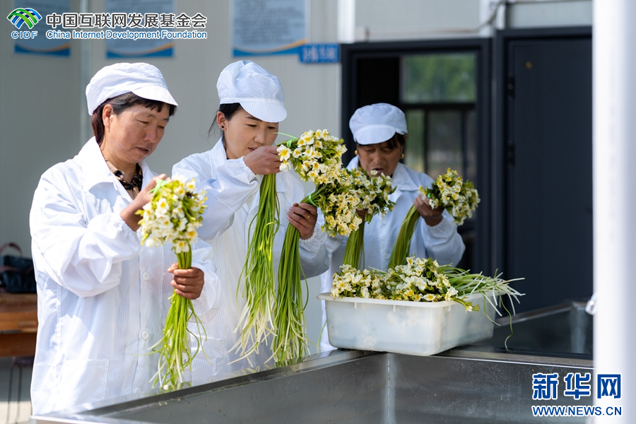 洱源海菜花研究基地,农户对海菜进行分拣(摄于4月16日)。新华网发(罗新才 摄)