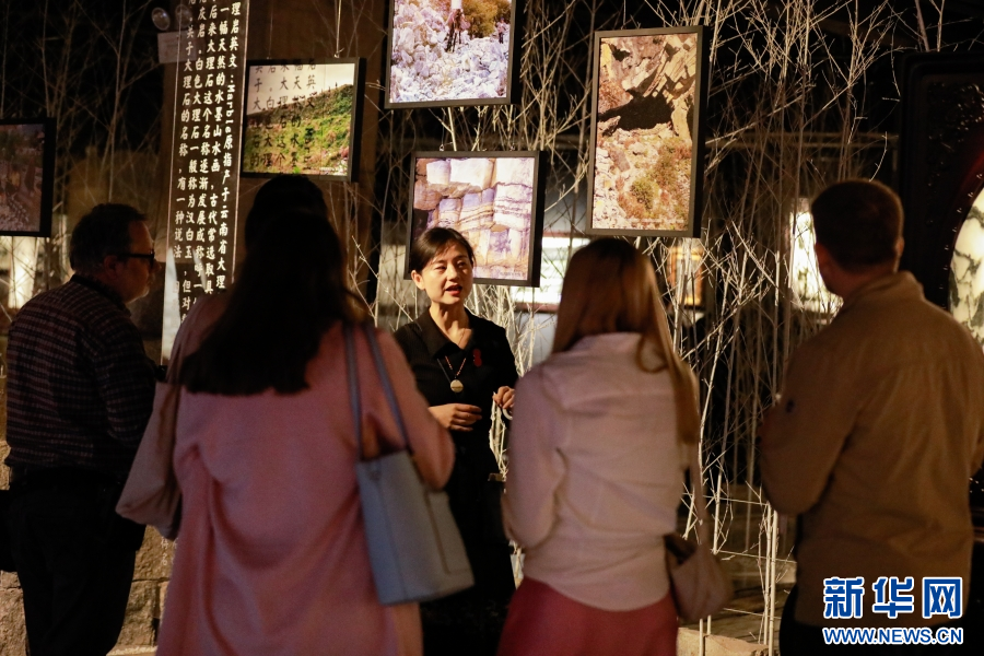在大理石方志馆,代表团深入了解大理石文化(4月14日摄)。新华网发(刘云 摄)