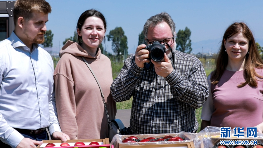 代表团在大理大本农业科技有限公司苹果种植基地了解洱海流域绿色农业发展状况(4月15日摄)。新华网发(刘云 摄)
