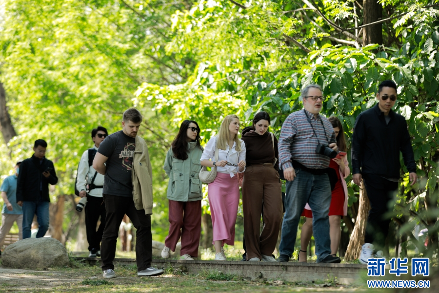 代表团行走在林间栈道(4月14日摄)。新华网发(刘云 摄)