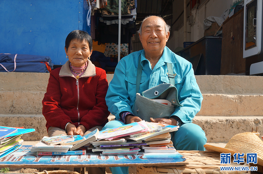 在采访的最后一天,李存德带着禹树芬到集市“摆书摊”,这也是十年来禹树芬第一次放下手头的事,来帮老伴摆书收书。“我想请你帮我们拍个合照,既是想让村民知道我老伴是谁,也想告诉大家,这些年的付出,是因为有她在背后支持。”李存德说。(完)