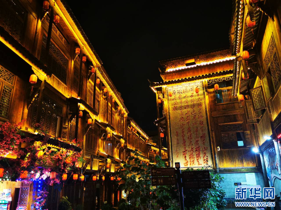 夜幕中的扎西红色小镇(资料图)。新华网发(陈允琪 摄)