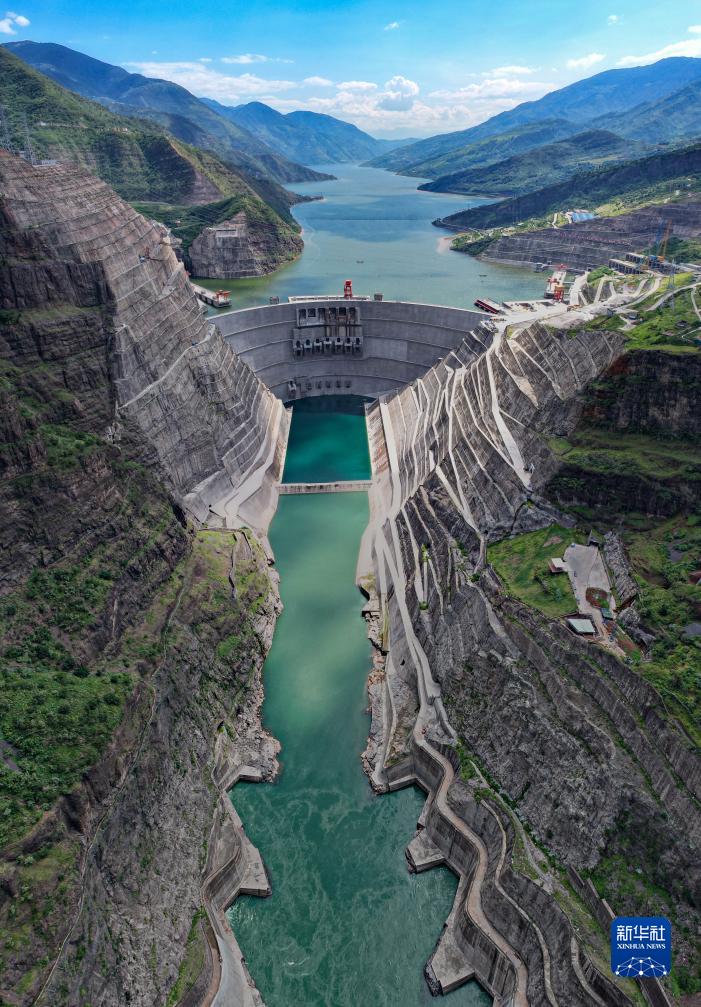 白鹤滩水电站一景(无人机照片,2023年9月18日 摄)。新华社记者 陈欣波 摄