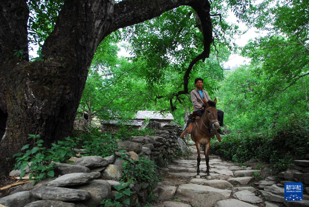 村民骑马从凤庆县诗礼乡古墨村的石板路上经过。凤庆县融媒体中心供图