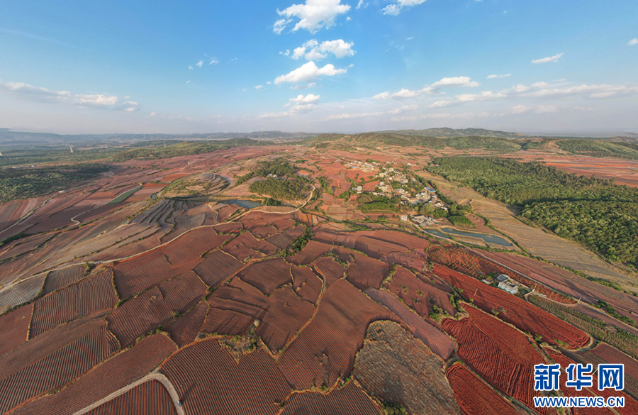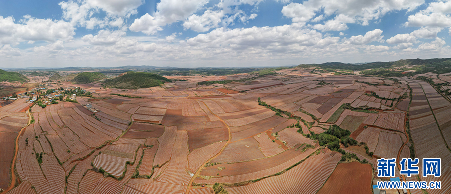 云南省曲靖市沾益区炎方乡拍摄的红土地(5月3日摄)。新华网发(杨俊鹏 摄)