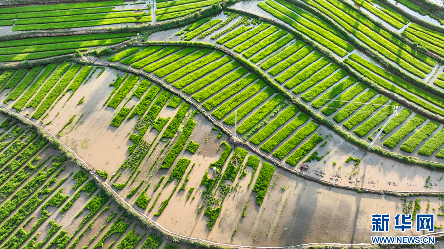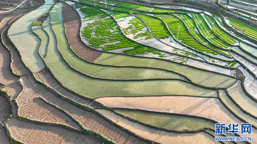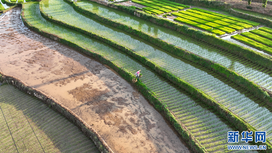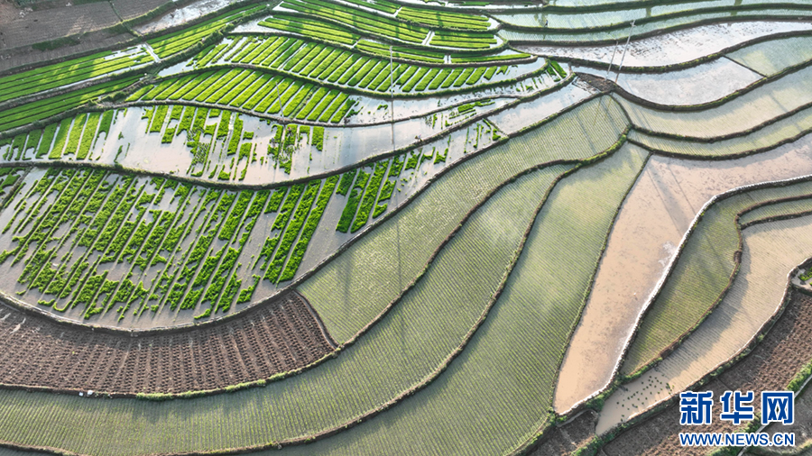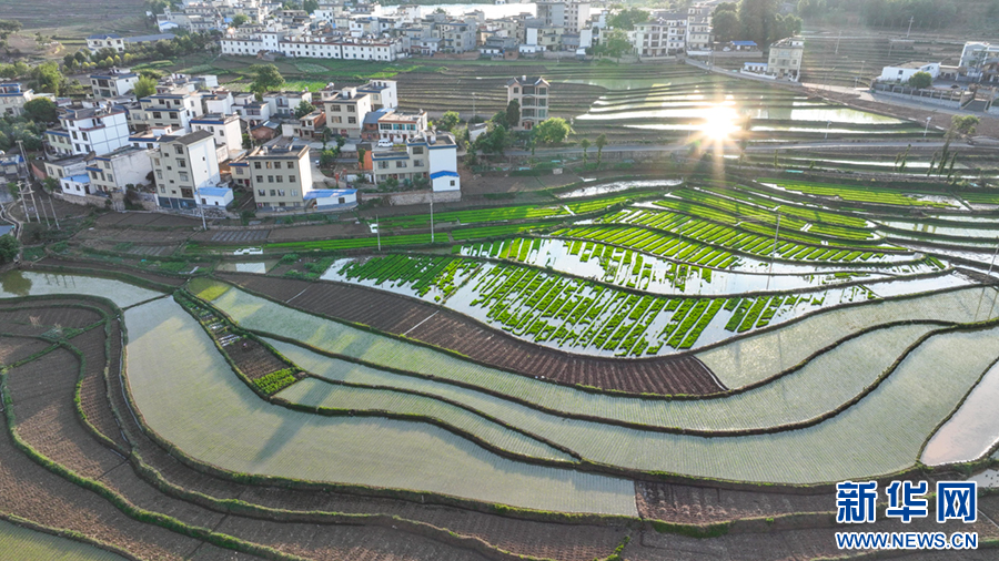 初夏时节,在云南省曲靖市沾益区天生坝村雨后的田野里,农民抢抓农时,忙着栽插秧苗,整理稻田。劳作的身影与阡陌农田、翠绿的秧苗、远处的村庄,共同构成一幅美丽的乡村田园画卷。新华网发(孙文来 摄)