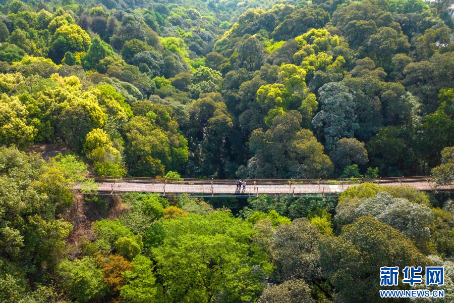 胡晓红在云南省高原特色乡土树种国家林木种质资源库拍摄植物图片(4月19日摄)。新华网 赵普凡 摄