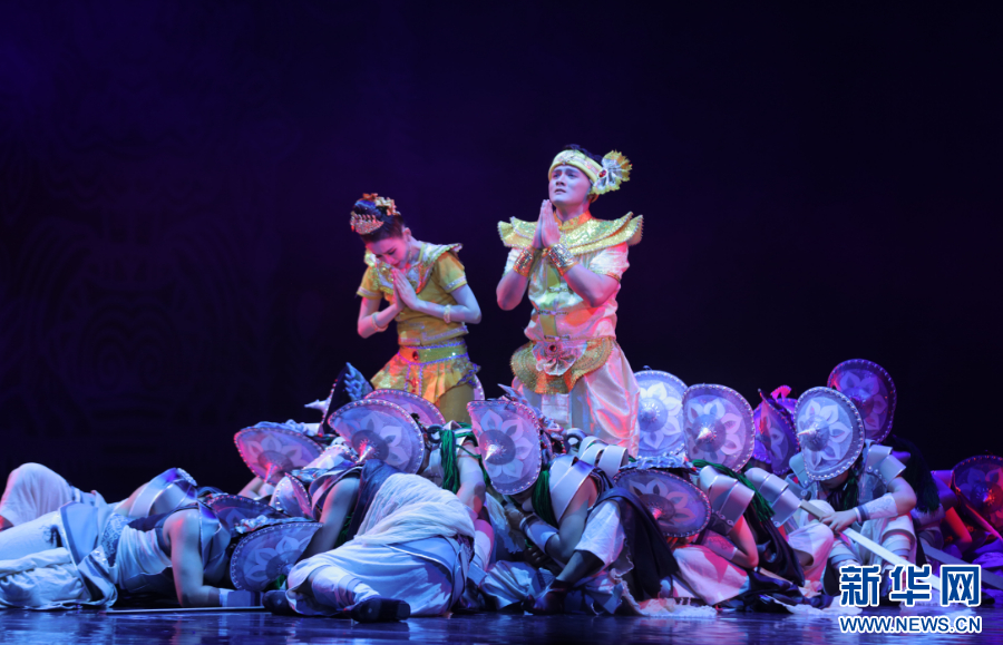 傣族章哈剧《乌莎巴罗》“第四场·大战”表演现场(5月17日摄)。新华网发(徐华陵 摄)